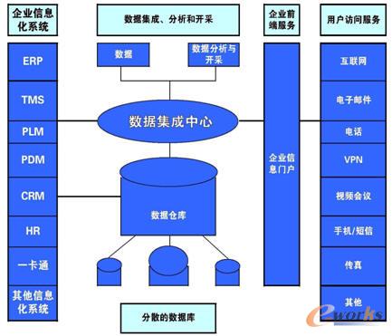 第二步是信息整合,以數據倉庫為基礎,整合基地信息化系統,打造企業門戶(未來三到五年內完成)。模型如下:
