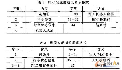 PLC根據機器人的通訊指令進行下一步的操作。整個通訊的可靠性由起始符,BCC檢驗碼和結束符來保證。在串口的通訊過程中,指令有可能受到任何的干擾而使原來的數據信號發生扭曲,此時的指令當然是錯誤的,為了偵測指令在傳輸過程中發生的錯誤,接收方必須對指令作進一步的確認工作,以防止錯誤的指令被執行,最簡單的方法就是使用校驗碼。BCC校驗碼的方法就是將要傳送的字符串的ASCII碼以字節為單位作異或和,并將此異或和作為指令的一部分傳送出去;同樣地,接收方在接到指令后,以相同的方式對接收到的字符串作異或和,并與傳送方所送過來的值作對比,若其值相等,代表通訊正確。