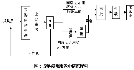 企業過程管理非常重要,經常有些業務是貫穿ERP和OA兩個系統的。例如采購流程包括:采購申請、申批、定單、驗收單、入庫單等,他涉及到組織、角色、任務和過程的定義和管理。工作流管理系統恰如其分地將辦公審批、流轉、發布等流程控制與ERP系統結合在一起,讓企業過程管理隨時得到監控。以圖2采購費用用款申請流程為例。