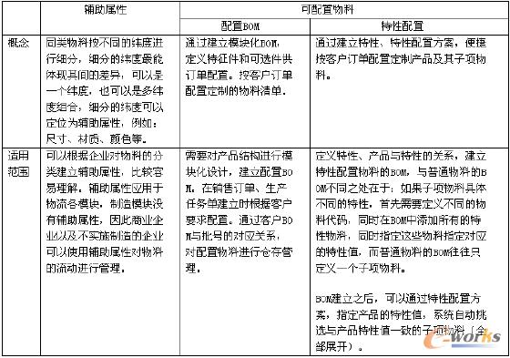 3.同物料編碼是否需要包含各種屬性含義的問題相同,在應用特性配置時,也不是將產品、半成品、零部件的所有差異都定義為特性才適宜,建議將那些對產品質量、成本有影響的差異定義為特性,其他差異可以通過批號、輔助說明等方式區別,原因在于:定義一個物料的特性時,相應的會在系統中增加相同數量的物料代碼,如果物料有N種特性,每種特性有M個特性值,則需要增加N*M個物料代碼,造成物料數據的增加;同時,每增加特性或特性值時,需要在BOM中添加子項物料并指定特性,對于新產品不斷增加的屬性,一般建議也不納入系統的特性管理。