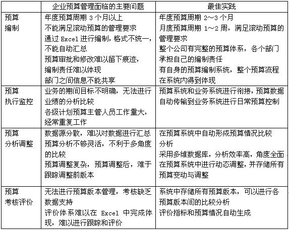 對比企業(yè)最佳實踐,企業(yè)預算管理面臨的主要問題可以用下表來體現: