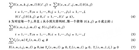 在確定調(diào)整略集時(shí),雖然求得的{A(t,m,L)}是一個(gè)增加機(jī)器的集合,但是在多計(jì)劃期時(shí)在該略集下求解,仍然會(huì)出現(xiàn)拆卸機(jī)器的情況,一個(gè)直觀的原因是由于開(kāi)始的計(jì)劃期增加了較多的某種機(jī)器而導(dǎo)致后期的時(shí)間段上需要拆卸.基于這個(gè)原因,需要對(duì)集合{A(t,m,L)}作如下的修正:在確定每個(gè)時(shí)間段的調(diào)整略集時(shí),都使它包含以前各期略集中相應(yīng)的元素.同時(shí)由于求得的{B(t,n,m,L)}是每個(gè)時(shí)間段t上每種需求情形n下應(yīng)該增加的機(jī)器集合,無(wú)法得到該時(shí)間段上該需求情形下應(yīng)該拆卸的機(jī)器集合.解決這個(gè)問(wèn)題的一個(gè)方法是,由于在計(jì)劃期初存在一個(gè)初始的裝配線布局,而考慮到機(jī)器的拆卸只能是對(duì)應(yīng)于某時(shí)間段上某條裝配線存在這種機(jī)器的情形,因此可以進(jìn)一步的修正集合{A(t,m,L):再在每個(gè)時(shí)間段集合的元素中,加入初始布局上存在的機(jī)器種類.做了上述兩次修正后,可以得到最終的集合{A(t,m,L)}必然也包含了需要拆卸機(jī)器的集合.由于初始的裝配線布局對(duì)于機(jī)器種類也是稀疏的,作如上的處理雖然會(huì)使問(wèn)題的規(guī)模仍然較大,但是相比較原始問(wèn)題而言,它仍然在很大程度上縮小了搜索空間。