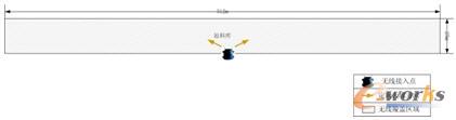 每庫區(qū)(原料庫和成品庫)為1跨,每跨寬度都為30米,長度為312米,各有3臺行車。每個庫區(qū)內(nèi)布設(shè)1臺符合802.11b標(biāo)準(zhǔn)的Teklogix PSION 9160無線擴(kuò)頻基站接入L3網(wǎng)絡(luò),其發(fā)射的2.4GHz頻率的無線電波能夠無盲區(qū)地覆蓋行車活動區(qū)域。行車上分別安裝1套Teklogix PSION 8560無線車載終端,與無線基站構(gòu)建成一個無線局域網(wǎng)。庫區(qū)的基站分布如下圖所示: