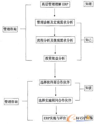 根據(jù)對國內(nèi)外長期實踐經(jīng)驗的總結(jié),陳啟申老師在其《ERP——從內(nèi)部集成起步》中談到,對ERP軟件的選型應(yīng)當(dāng)遵循以下幾個步驟(如圖),簡稱為“知理—知己—知彼原則”。
