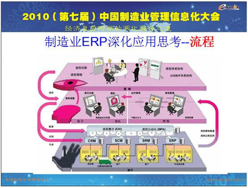 2010年7月2日,主題為“經(jīng)濟復(fù)蘇時期的兩化融合之道”的e-works2010(第七屆)中國制造業(yè)管理信息化大會在濟南成功召開,本人有幸主持了下午“ERP實施與深化應(yīng)用”分論壇,并結(jié)合企業(yè)管理信息化應(yīng)用的現(xiàn)狀做了“制造業(yè)ERP深化應(yīng)用剖析”的主題發(fā)言,在發(fā)言中提到了關(guān)于ERP應(yīng)用的六點反思,現(xiàn)分享如下: