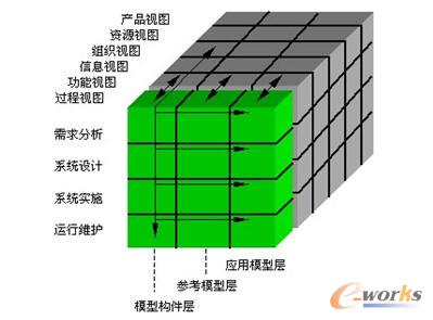 目前,較為流行的為集成化企業建模框架,如圖所示:是一個由生命周期維、視圖模型維、通用性層次維組成三維立方體結構,如圖1所示。