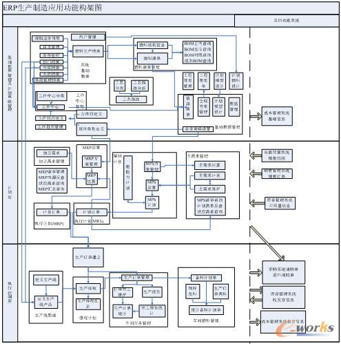 (1)系統功能:下圖為生產制造管理各功能模塊及模塊主要節點示意圖。