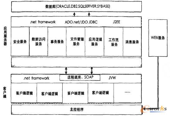 伊爾普技術架構如圖2所示。伊爾普物料管理系統的模塊采用了典型的多層開放式體系架構(multitier),支持多種客戶端設備和多種大型主流數據庫,如DB2、Oracle、Sqserverl操作系統。支持基于Web的調用與傳輸標準和分布式計算模型,有效解決了系統安全性、開放性和海量數據處理。
