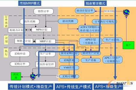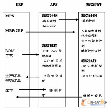 精益的滾動(dòng)計(jì)劃和混合順序排程需要APS的需求計(jì)劃和優(yōu)化排序的支持,長提前期的物料計(jì)劃需要MRP的支持,看板的執(zhí)行和ERP的庫存模塊集成。