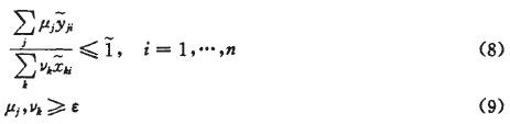 DEA最早由Charnes、Cooper和Rhodesr提出,以解決多個輸入輸出DMU的相對有效性測量及比較問題,目前已經在系統評價和組織評價領域得到了廣泛的應用。Sengupta于1992年提出了模糊DEA理論模型,該模型利用模糊集理論中的相關概念來表示不確定及模糊的數據,并通過傳統DEA方法來對其進行求解。