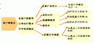 ERP項目效益評估,應該緊緊圍繞企業關鍵業績指標(KPI)體系來進行。有關KPI體系的知識,利用Google等工具搜索相關介紹可以查閱相關資料,比如:對SAP軟件的BW模塊的介紹、對企業管理工具平衡記分卡(BSC)的介紹、對Covics EasyBI軟件產品的介紹等。KPI體系是一個完善科學的績效考量體系,所涉及的KPI指標多達幾百個,這些KPI指標分別可以列屬到財務管理方面、研發和質量管理方面、供應鏈管理方面、銷售和分銷管理方面等。舉例來說:企業對“客戶滿意度”這一個KPI指標的考量,與“老客戶銷售率”、“訂單執行效率”、“訂單處理速度”這3個細分的KPI指標相關;再進一步細分,“訂單執行效率”與“及時交付”、“數量精確度”和“退貨率”這3個指標有關;如果再進一步細分,所需要考量的KPI指標都可以一一對應和落實到ERP系統執行的每一個步驟和所輸入和生成的每一個數據。如圖示: