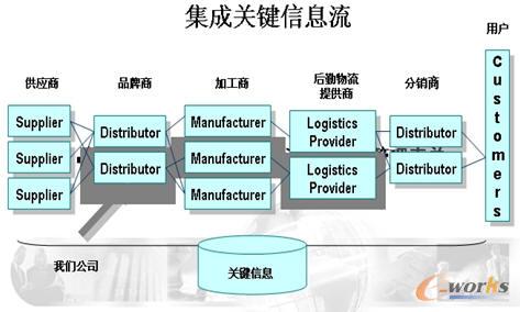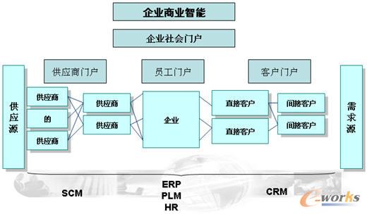 社會集成是企業(yè)信息化的終極目標(biāo),關(guān)鍵信息從企業(yè)內(nèi)部向上下游進(jìn)行延伸,如圖: