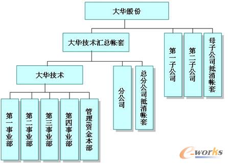 根據(jù)大華股份各事業(yè)部虛擬公司制核算和資金管理虛擬財(cái)務(wù)結(jié)算中心制核算的要求,建立如下的帳套架構(gòu):