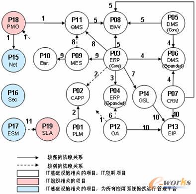 某些項目的開始依賴于另一些項目產生的成果。也有部分項目需要同步實施、協同工作才能實施,達到項目的目的。