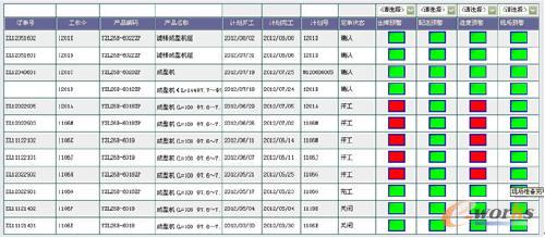 在裝配計(jì)劃的執(zhí)行過(guò)程中,如果出現(xiàn)異常情況(設(shè)備運(yùn)轉(zhuǎn)異常、訂單插單、訂單時(shí)間變更等情況),管理人員可以靈活的對(duì)裝配計(jì)劃進(jìn)行重新調(diào)整,來(lái)滿足實(shí)際訂單的需求。同時(shí)管理人員可以通過(guò)柔性裝配系統(tǒng)時(shí)刻關(guān)注車間的各工位執(zhí)行進(jìn)度(工序進(jìn)度)、訂單或單機(jī)裝配進(jìn)度(訂單或單機(jī)產(chǎn)品所在工位信息)、異常狀況(單機(jī)產(chǎn)品生產(chǎn)是否按照計(jì)劃進(jìn)度、是否拖期、是否缺料)(如圖3),管理人員可以根據(jù)裝配異常情況(如:已導(dǎo)致訂單拖期)進(jìn)行資源和進(jìn)度的協(xié)調(diào),來(lái)保證訂單按時(shí)交貨。