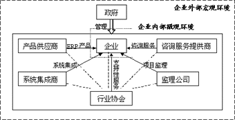 前面談到了ERP應用的環境及其社會角色,它們這幾個方面的關系我們可以通過圖2表示:
