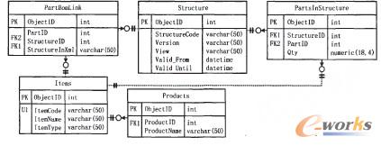 驟6 由TempBOM和PartStructure表可以通過遞歸獲得基于XML模型表示的BOM數據,然后將其存儲到PartBomLink表中productID對應的StructurelnXmi字段中,以實現BOM緩存的創建或變更。
