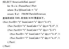 步驟2若level≥0,則將TempParts首行記錄中ParentPartID字段的值賦給parentPartID,刪除該行記錄,轉步驟3;若level 步驟3 通過parentPartlD找到在PartBom-Link表中的關聯記錄,若StructureInXml字段不為NULL,則將parentPartID和StructureXml字段數據添加到TempStructureXml表中,level=level-1,轉步驟2;若StructureInXml字段為NULL。且存在理個StructureID不為NULL,則轉步驟4。 步驟4 找到所有n個StructureID所關聯Structure集合,根據結構有效性判斷式得到有效結構sv,獲取sv的ObjectlD,然后轉步驟5;若沒有有效結構,則轉步驟2,level=level-1。 步驟5 level—level+1;由步驟4獲取的StructureID在PartslnStructure表中查詢得到所有關聯記錄的PartlD值、Qty值,步驟3中的parent-PartID以及level一并添加到TempBOM中相應的ChildPartID,ActualQty,ParentPartID和Level字段,并將所有記錄的PartID值和level一并添加到TempParts表中的相應字段;轉步驟2。步 上述步驟實現了關系模型數據向樹形結構模型的轉換,過程較為復雜。對于沒有緩存的傳統存儲模型,每次查詢BOM數據都需要執行類似轉換過程,因此執行速度較慢。而在設計了緩存的新型存儲模型中,只有首次查詢時才會執行該轉換過程。構建BOM緩存之后,在Microsoft SQL Server2005數據庫中查詢圖l中實例的部件8的BOM結構時可執行如下的SQI。查詢語句(該SQL語句中內嵌了xQuery查詢語句)。 在構建內存中的BOM對象時,只需遍歷以上XML數據的樹形結構,將每個Part元素映射為一個Part對象(將Part元素的屬性值賦給Part對象的同名屬性),并添加到其父級對象的子件鏈表中即可。 5 結束語 制造BOM是制造企業實施生產管理系統的關鍵基礎數據,如何減少BOM存儲模型的冗余又兼顧運行效率一直是BOM模型設計中的難點。由于制造BOM的數據滇取頻率遠高于數據變更的頻率,在盡量避免無益冗余(如圖2a中a和g相同子件的重復表示)的同時,對于能夠明顯改善BOM讀取效率的冗余,應適當保留甚全需要專門設計。本文模型中XMI。緩存部分相對于關系模型部分雖然也存在一定冗余,但其只是將當前有效的部分BOM結構另行存儲,額外占用的空間較少,卻可以大幅度提升BOM存儲模型的整體性能。該模型用于CAXA制造過程管理系統后發現,在零部件節點越多、裝配層級越多時,對效率的提高效果越明顯。以構建有1065個零部件節點、最深裝配層級為11層的BOM為例,進行了10次實驗與傳統模型進行比較后發現:首次用時傳統模型為6.173 s,本文模型為6.270 s;第2~10次平均用時傳統模型為6.156s,本文模型為0.078 s。結果表明,除首次讀取時由于構建BOM緩存而用時稍長之外,本文模型具有明顯的速度優勢。 核心關注:拓步ERP系統平臺是覆蓋了眾多的業務領域、行業應用,蘊涵了豐富的ERP管理思想,集成了ERP軟件業務管理理念,功能涉及供應鏈、成本、制造、CRM、HR等眾多業務領域的管理,全面涵蓋了企業關注ERP管理系統的核心領域,是眾多中小企業信息化建設首選的ERP管理軟件信賴品牌。