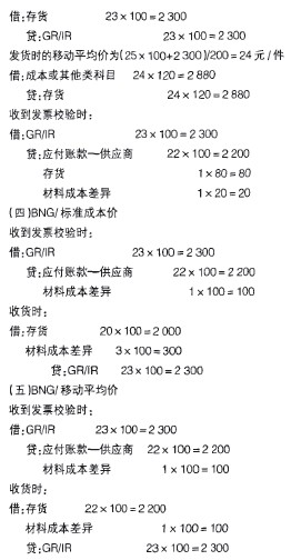 (三)BNG/標準成本價收到發票進行校驗時,按發票金額計入“GRIIR”;收貨時按照標準成本計入存貨科目,采購訂單與發票之間的差異計入。材料成本差異”科目。