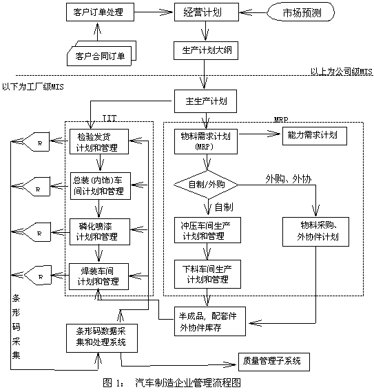 現代汽車制造企業是典型的大批量流水作業生產方式,汽車企業生產管理流程如下圖1所示: