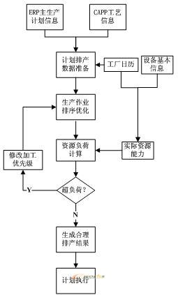 經(jīng)過(guò)作業(yè)排序后,每臺(tái)設(shè)備都安排了加工對(duì)象,由于工序的加工提前期已知,同時(shí)工廠日歷和工作中心的定額能力也已預(yù)先設(shè)置,即可計(jì)算出設(shè)備加工每道工序的開(kāi)始、完工時(shí)間,從而可以得到設(shè)備的累積負(fù)荷,如果累積負(fù)荷超過(guò)設(shè)備的實(shí)際負(fù)荷能力,則必須通過(guò)調(diào)整工序的加工優(yōu)先級(jí),進(jìn)行重新排產(chǎn),或者采取加班、外委等方式,滿足生產(chǎn)條件。