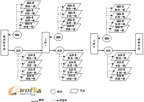 (1)物流節(jié)點(diǎn)過(guò)多,倉(cāng)庫(kù)設(shè)置過(guò)多,導(dǎo)致物流線路過(guò)長(zhǎng)。且倉(cāng)庫(kù)之間都用"四聯(lián)單",單據(jù)量大,交接操作、單據(jù)收集的工作量大,因此記日志賬,對(duì)賬的工作量相當(dāng)?shù)卮螅?BR> (2)導(dǎo)致車(chē)間成本核算,財(cái)務(wù)制造成本記賬信息過(guò)載,工作量大;
