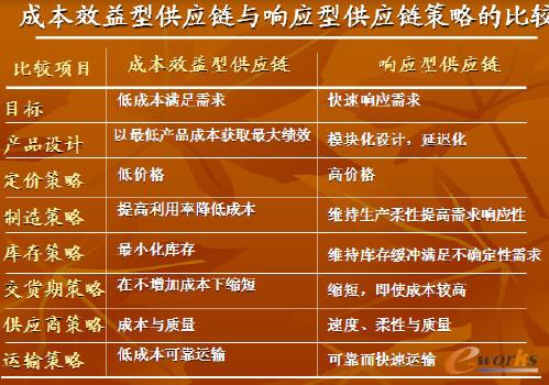 成本效應供應鏈與響應型供應鏈策略的比較