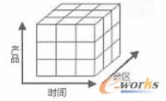關(guān)系數(shù)據(jù)庫(kù)之父E.F.Codd提出了多維數(shù)據(jù)庫(kù)和多維分析的概念,即OLAP。維就是人們觀察數(shù)據(jù)的角度,維存在細(xì)節(jié)程度不同的多個(gè)描述方面,維的多個(gè)描述方面稱為維的層次。例如,時(shí)間維有日、月、季、年等層次來(lái)描述。多維數(shù)據(jù)一般都以數(shù)據(jù)立方體的結(jié)構(gòu)存放。它用三維或更多的維數(shù)來(lái)描述一個(gè)對(duì)象,每個(gè)維彼此垂直。數(shù)據(jù)的測(cè)量值發(fā)生在維的交叉點(diǎn)上,數(shù)據(jù)空間的各個(gè)部分都有相同的維屬性。如圖2所示。