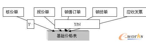 從以上的圖中,我們可以看出,核價單作業(yè)其一定會更新基礎價格表的數(shù)據(jù),而其他單據(jù)的操作,如報價單、銷售訂單、銷貨單、應收發(fā)票等單據(jù)價格的變更,企業(yè)是可以根據(jù)自己實際的情況,選擇是否變更基礎價格表的價格。