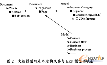 在該模型中,通過"文檔-章節-頁鏈-頁"的嵌套結構進行文檔的組織,并在頁中定義了各種機制以使其與ERP 模型建立映射關系。