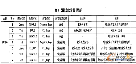 例如,某一頁的ContentType 為Segment-Page ,其PresentationType為List ,其Mode1Info 包含了某一業務片段segmenti ,那么該頁在最終文檔中就表現為一個列表,列出了該業務片段中包含的所有業務。