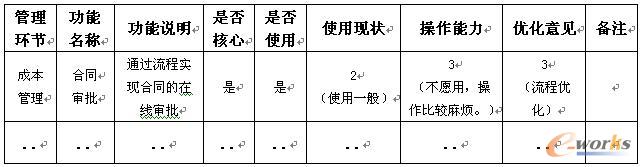 某企業成本管理系統使用現狀:大多數合同數據均是以補錄的方式進入系統,合同的在線流程審批使用得非常少。以下為針對該系統的調研表格設計與調研數據反饋: