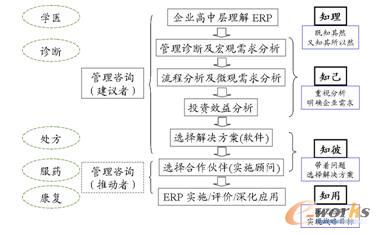 強調需求分析之前必須做管理診斷和因果分析,是因為各種管理問題并不一定都是通過實施ERP能夠解決的,那種以為“上了ERP什么問題都解決了”是一種極大的誤解,ERP并不是萬能的。比如說產品成本高、質量差是由于加工工藝落后造成的,那么就需要把資金投向更新設備和技術改造,而不是上ERP;如果企業的問題是沒有穩定的市場,也不是上ERP就能完全解決的。換言之,改進管理就像看病一樣,必須找準“病因”,對癥下藥。