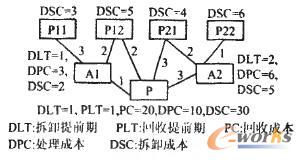 c.不確定性。回收物流和產(chǎn)品需求不匹配,廢舊物品的供應(yīng)與生產(chǎn)商的需求不匹配,使得拆卸、物料修復不確定;從終端市場回收的物品在返回時間、數(shù)量和質(zhì)量上的不確定;因耗損程度不同,回收產(chǎn)品只有經(jīng)過檢測環(huán)節(jié),才能確定后續(xù)的流向,導致路徑不確定;在系統(tǒng)中,即使是同一種產(chǎn)品或零部件,其工藝路線和再處理時間的不同也會導致工藝路線和加工時間的不確定。