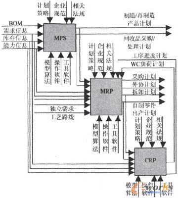生產(chǎn)計劃以閉環(huán)MRP為核心,增加了拆卸和再制造計劃。生產(chǎn)計劃管理功能模型如圖3所示。