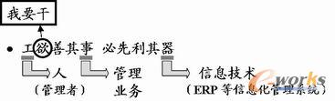這里“工”就是管理者和員工,“欲”就是管理者有把管理搞上去、提高企業(yè)競(jìng)爭(zhēng)力的強(qiáng)烈欲望,簡(jiǎn)言之,“工欲”就是“我要干”。如果企業(yè)的管理者和全體員工沒有改進(jìn)管理的欲望,再好的ERP產(chǎn)品也不可能發(fā)揮作用。因此,千萬(wàn)不能忽視這個(gè)“工”字,也就是“人的因素”。