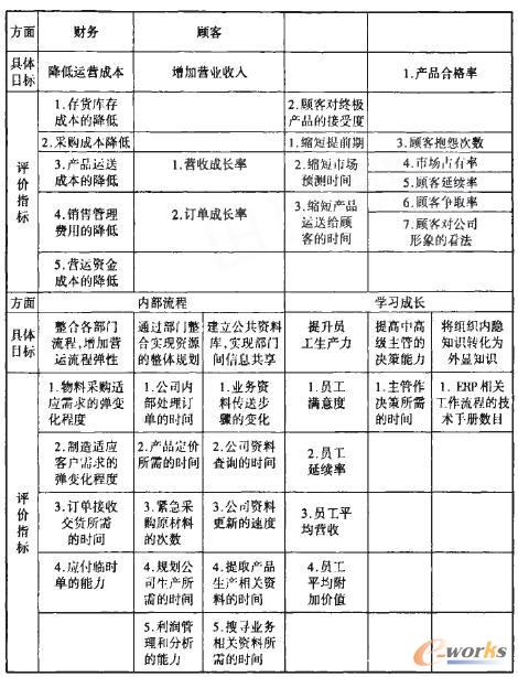 2.ERP平衡績效評價主要指標體系(如表1)