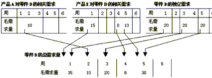 圖3 相關需求與獨立需求同時存在時的需求量計算