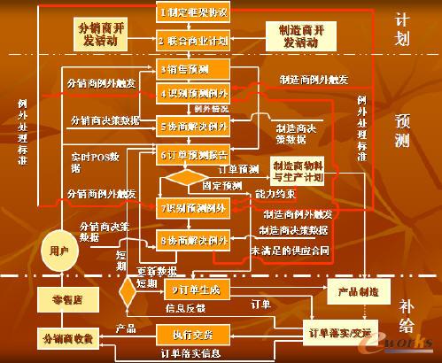 兩個企業(yè),一個是分銷商,一個是制造商。要建立一個合作框架,比如建立長期的協(xié)作商業(yè)計劃,大家進行預(yù)測的時候要同步,比如制造商做預(yù)測要考慮到歷史銷售數(shù)據(jù),盡你自身生產(chǎn)過程中一些例如的情況,分銷商要考慮到市場的變動情況,這些實時的數(shù)字同時來處理,所以大家建立預(yù)測的數(shù)據(jù)就更準(zhǔn)確,更好,比單一企業(yè)做更好。補給也是這樣,快速補給,這個是供應(yīng)鏈高級信息分享技術(shù),或者協(xié)同運作技術(shù)。從理論界來講,仍然是研究一個課題。