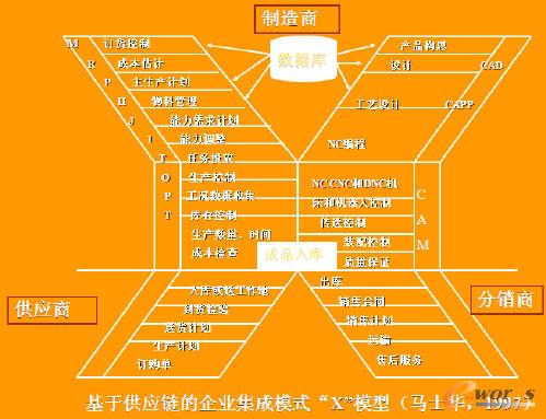 1997年馬士華教授提出一個X模型,和著名企業(yè)信息化研究中心教授希爾提出。馬士化教授提出供應(yīng)商和分銷商信息怎么集成到制造商的模型。所謂X模型,是把后面供應(yīng)商和前面分銷、客戶信息集成上去的一個概念。這個打破了傳統(tǒng),所以當(dāng)時我們開發(fā)系統(tǒng)是十五863成果展示。