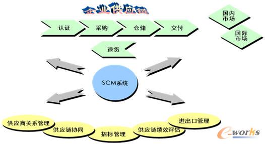 再細化下去,整個中興通訊供應鏈管理系統主要覆蓋下面細化的領域,有認證、采購、倉儲、交付、退貨,另外還有一些輔助業務,包括供應商關系管理、供應鏈協同、招標管理、供應鏈績效評估和進出口管理等等。