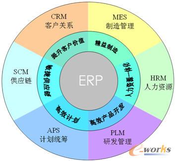 整個企業應用架構是以ERP系統為核心,并按照業務領域打造6大外圍系統,分別是,SCM、APS、PLM、HRM、MES和CRM。