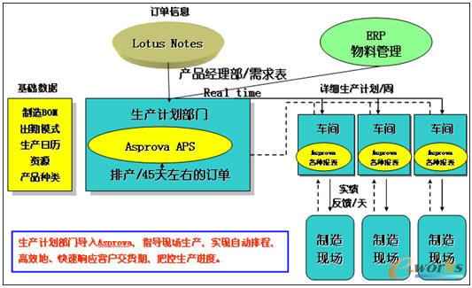 APS系統實施涉及到NOTES系統和ERP系統,下圖為APS系統與NOTES和ERP的結合: