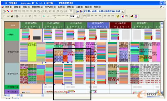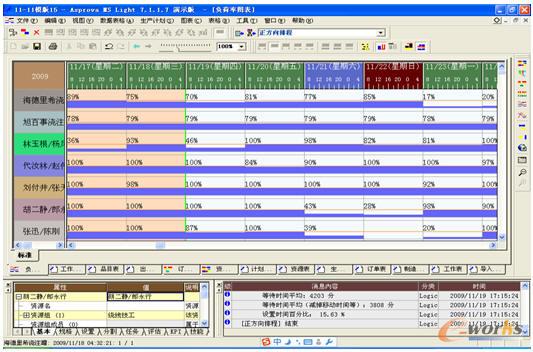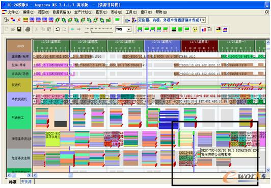 然后,瓶頸資源要求的特殊性和瓶頸資源的動態變化。模具要求跨工序鎖定,爐資源要求不同作業時間的工作同進同出。這兩類資源的特殊要求,加大了項目實施的難度。通過對所選APS軟件的改進,通過對資源后設置的綜合運用,使得項目實施順利進行。由于訂單結構的變化(市場不穩定性),瓶頸資源會動態變化。系統所涉及的任何資源,都有可能成為瓶頸。這對每個資源設定的精準性提出了更高要求。項目組通過對主要可能瓶頸資源進行了詳細的分析,精確設置資源滿足動態約束。