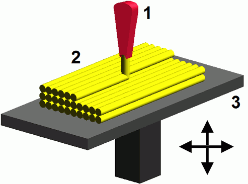 1,噴嘴;2,沉積材料;3,可以多方向移動的平臺