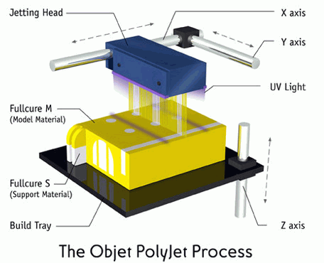這是最近才發明的技術,其中Polyjet矩陣是Object Geomatries公司2007年發布的。其技術原理是噴射超薄層的光固化物,并且可以噴射多種不同的材料,其最薄的層,只有16微米。