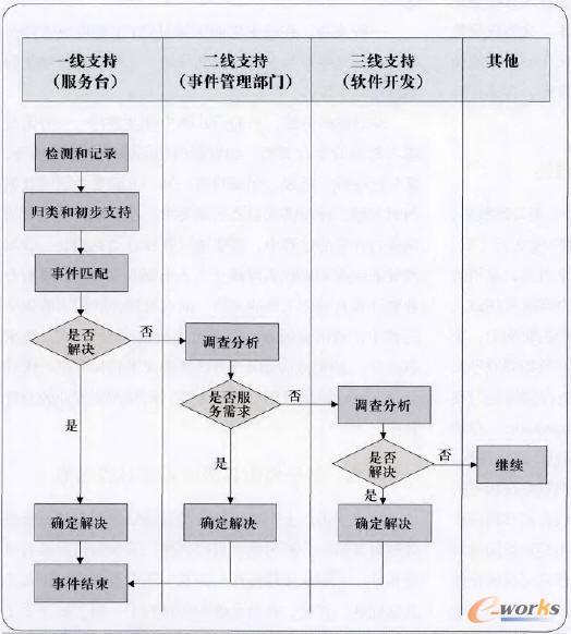 企業(yè)在事件管理過程中通常會出現(xiàn)的一個誤區(qū)是未能分清事件管理同問題管理的區(qū)別,在處理事件過程中注重事件具體原因和解決力、法,未將恢復(fù)因此中斷的服務(wù)放在事件管理的首位,將事件管理問題化。