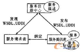 Web Service即Web服務,是建立在HTML、XML、SOAP、UDDI等標準Web協議基礎上的一種面向服務的新架構。這種架構包括服務提供者、服務請求者和服務注冊中心3種角色,執行發布、發現和綁定3個動作,見圖1。