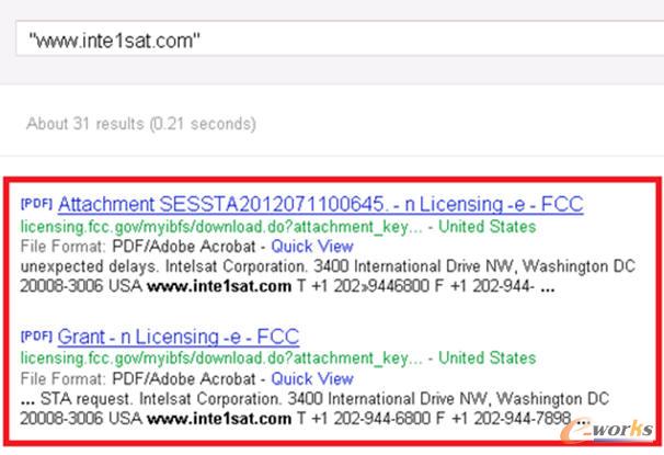 而通過谷歌搜索“inte1sat.com”,顯示的結果為一個存儲在美國聯邦通信委員會(FCC)的Web站點上的PDF文檔(見圖3)。 FCC是一家協調美國各州之間的無線電、電視、有線、衛星及同軸電纜等網絡的大型機構,影響力甚至覆蓋到南美洲的哥倫比亞特區。