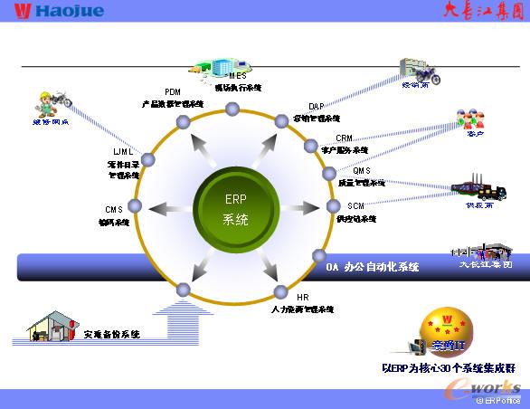 自2003年引進SAP-ERP系統開始,大長江集團展開了一系列現代化的信息化建設。目前已建成了以ERP為核心的覆蓋到研發、采購、物流、生產、銷售、服務、管理等各個領域的信息化平臺,包括OA辦公自動化系統、人力資源管理系統、供應鏈系統、質量管理系統、客戶服務系統、營銷管理系統、現場執行系統、產品數據管理系統、零件目錄管理系統和編碼系統。